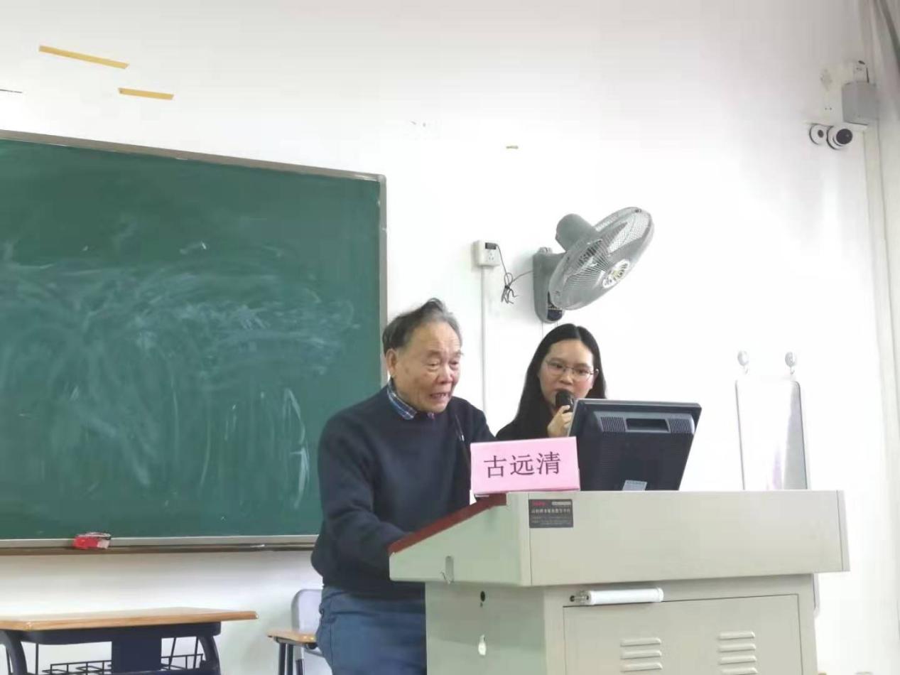 3月14日,应用外语学院研习所及之江社系列活动在明德楼2-102举行。中南财经政法大学教授、台港澳暨海外华文文学研究所所长、中国新文学学会副会长、国际炎黄文化研究会副主席古远清应邀为外语学子进行一场主题为“青春作伴好读书”的读书分享交流会。学院党总支书记李德富,副院长杨国民出席本次活动。