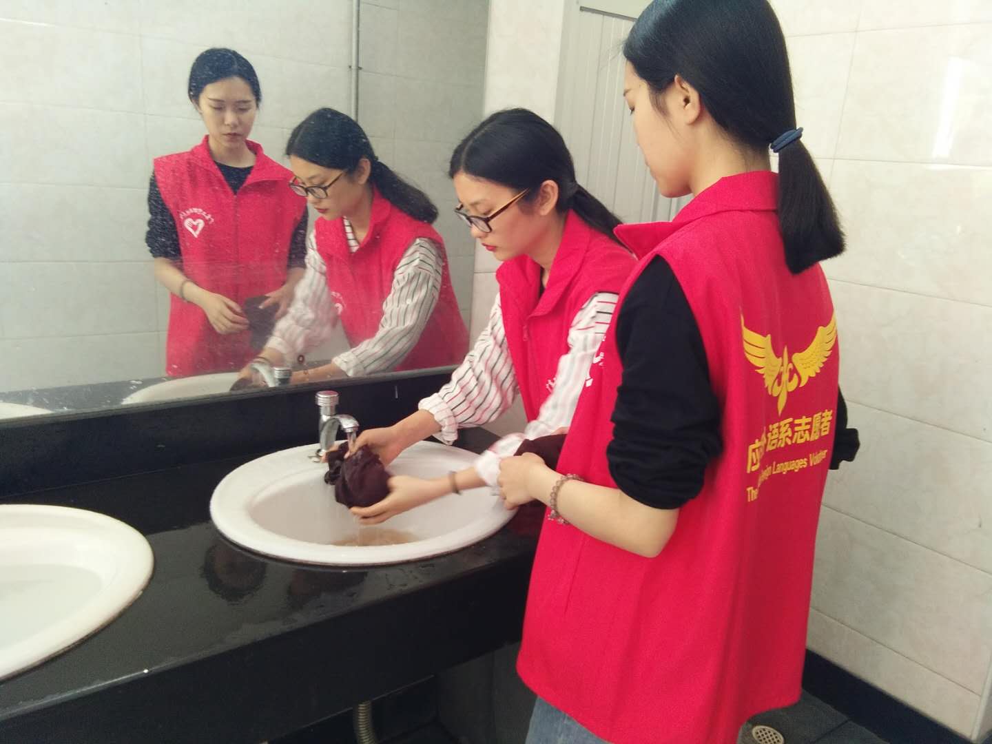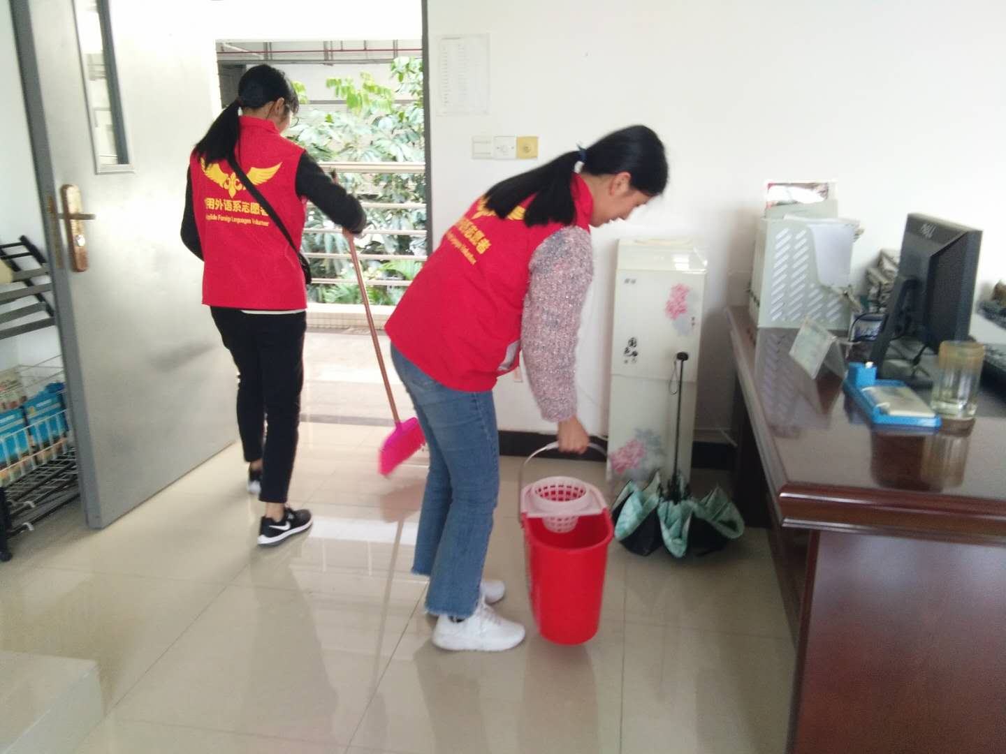 三月初春,2019312日,全校掀起雷锋月热潮,应用外语学院青协分会也开展了饭堂义扫活动。同学们报名时热情高涨,在活动开展时在经过短暂的分工之后,大家就投入了工作之中。一部分同学把抹布放进水里浸湿,再拧干,然后仔仔细细地擦洗着每一张桌子,很快沾满油污的桌子被擦得一尘不染。另一部分同学往地上洒完水后,拿起拖把井然有序的拖起地来,对准污垢拖了又拖,大家都十分认真仔细地打扫饭堂的每一个角落。还有一些志愿者负责帮每日辛勤为我们上课的老师们打扫办公室,整理桌面,扫地拖地,一切都是井然有序的样子。饭堂的阿姨们也露出了欣慰的笑容,对我们的辛勤工作做出了肯定。