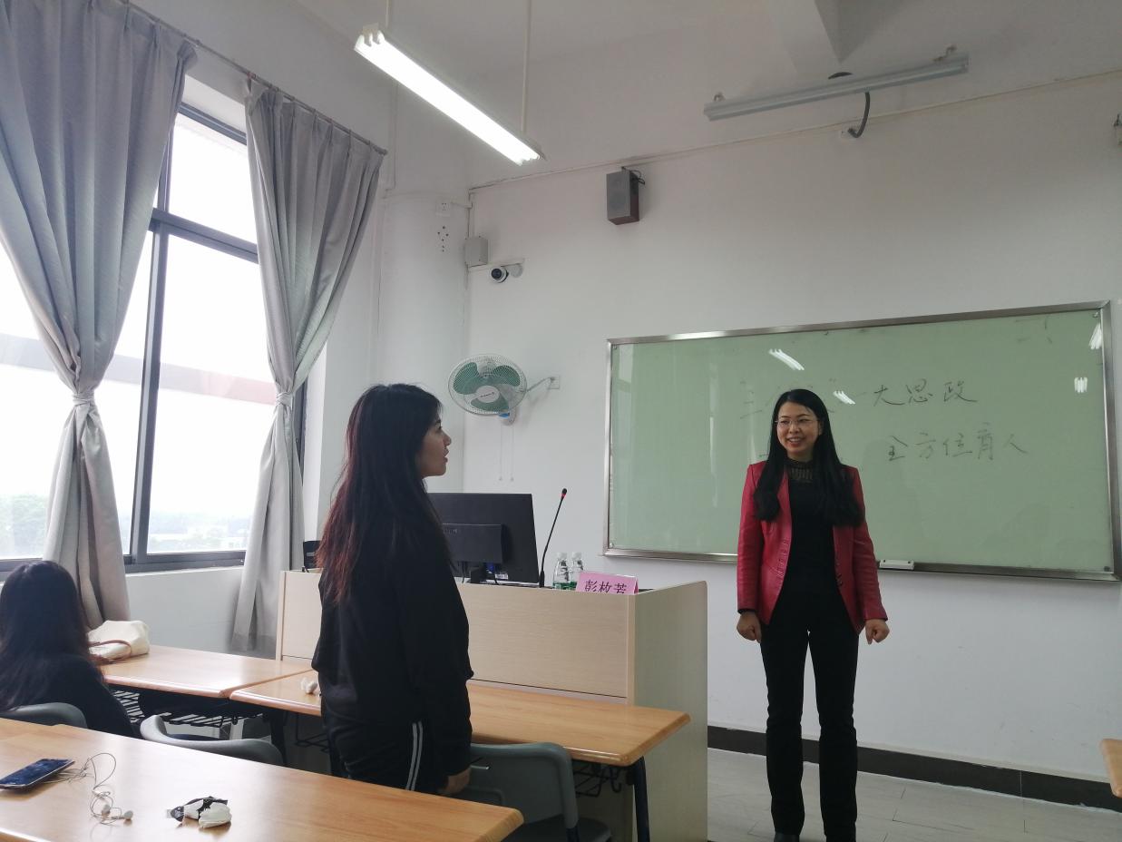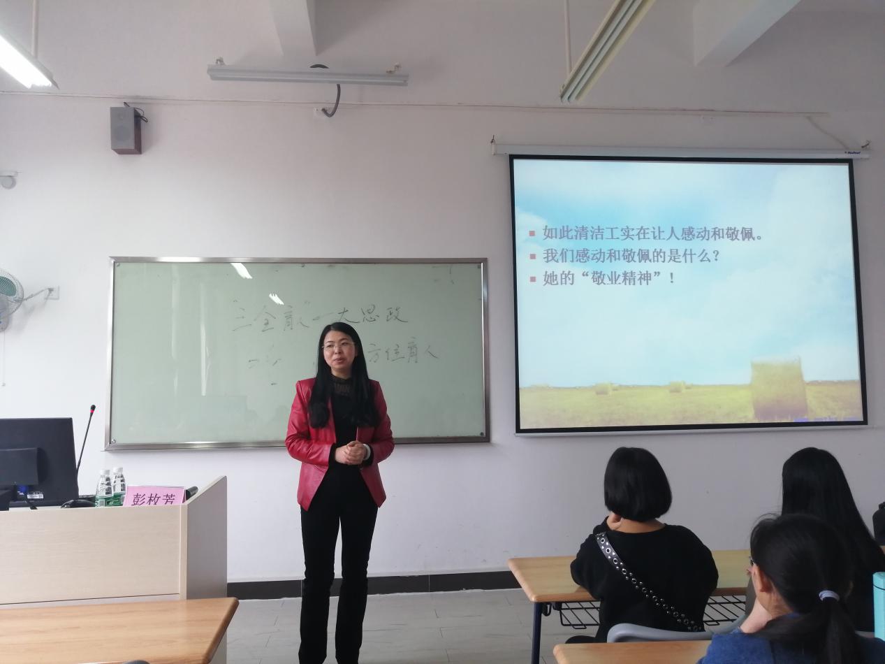 彭枚芳主要从立德,爱岗,敬业三个方面展开此次思政课的内容。课上,她以“什么是一个人的品德”为引导,强调作为作为一名优秀大学生不管在生活上还是学习上都要做一个有优良品德的人。在谈及爱岗敬业的话题时,彭枚芳更引经据典,讲述了许多爱岗敬业事迹,并结合了生活中的见闻,语言生动、实例鲜活、贴近社会现实地指出爱岗敬业的重要性。强调不管在什么岗位上,都要做好自己本分的工作,同时,也鼓励大家多参加学校的活动,丰富的经历更有利于大家以后在工作岗位迎接不同的挑战。