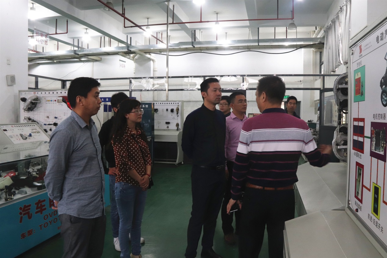 随后,在365官网教师的带领下,河源理工学校教师代表团来到行知楼101新能源汽车技术实训基地参观并作进一步专业交流,共同探讨了新能源汽车专业人才培养模式、专业发展及实训室建设等方面的问题,谋求资源共享、互利互惠的合作交流模式。