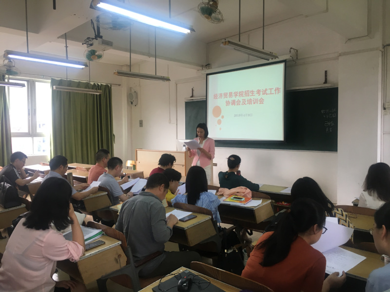 为了确保我院2019年自主招生考试工作的顺利进行,切实维护学校和考生的合法权益。根据学校相关文件精神,经济贸易学院于2019年4月9日下午在天河校区西区综合楼501室召开了2019年招生考试协调和培训会议。