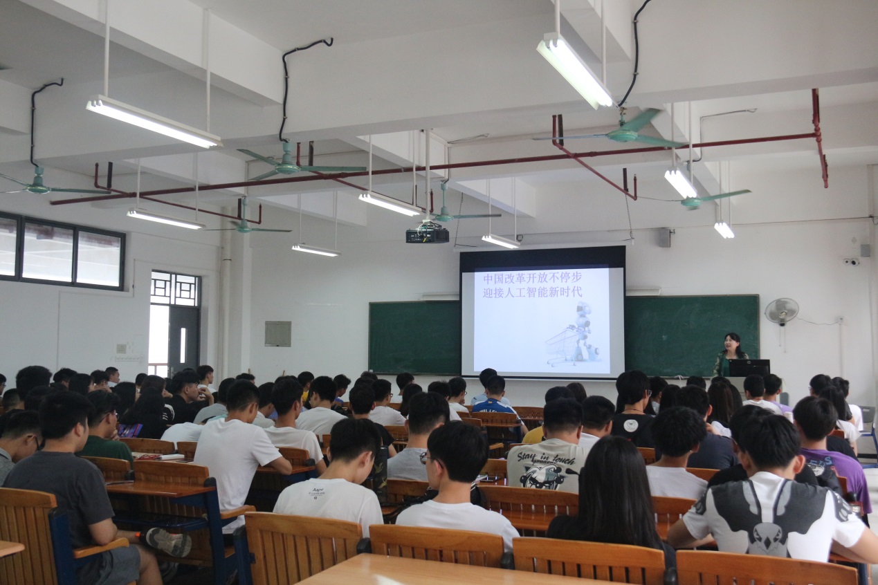 课上,王艳芬院长以“中国改革开放不停步,迎接人工智能新时代”为题,围绕人工智能、智能机器、智能生活、智慧校园,向同学们详细解释人工智能Artificial Intelligence的含义,即用机器模拟、延伸和扩展人的智能,并收集许多人工智能历史进行进一步解析,例如诸葛亮的木牛流马、春秋时期鲁班设计的能在空中飞行三日不下的木鸟与汉代张衡设计的计里鼓车。