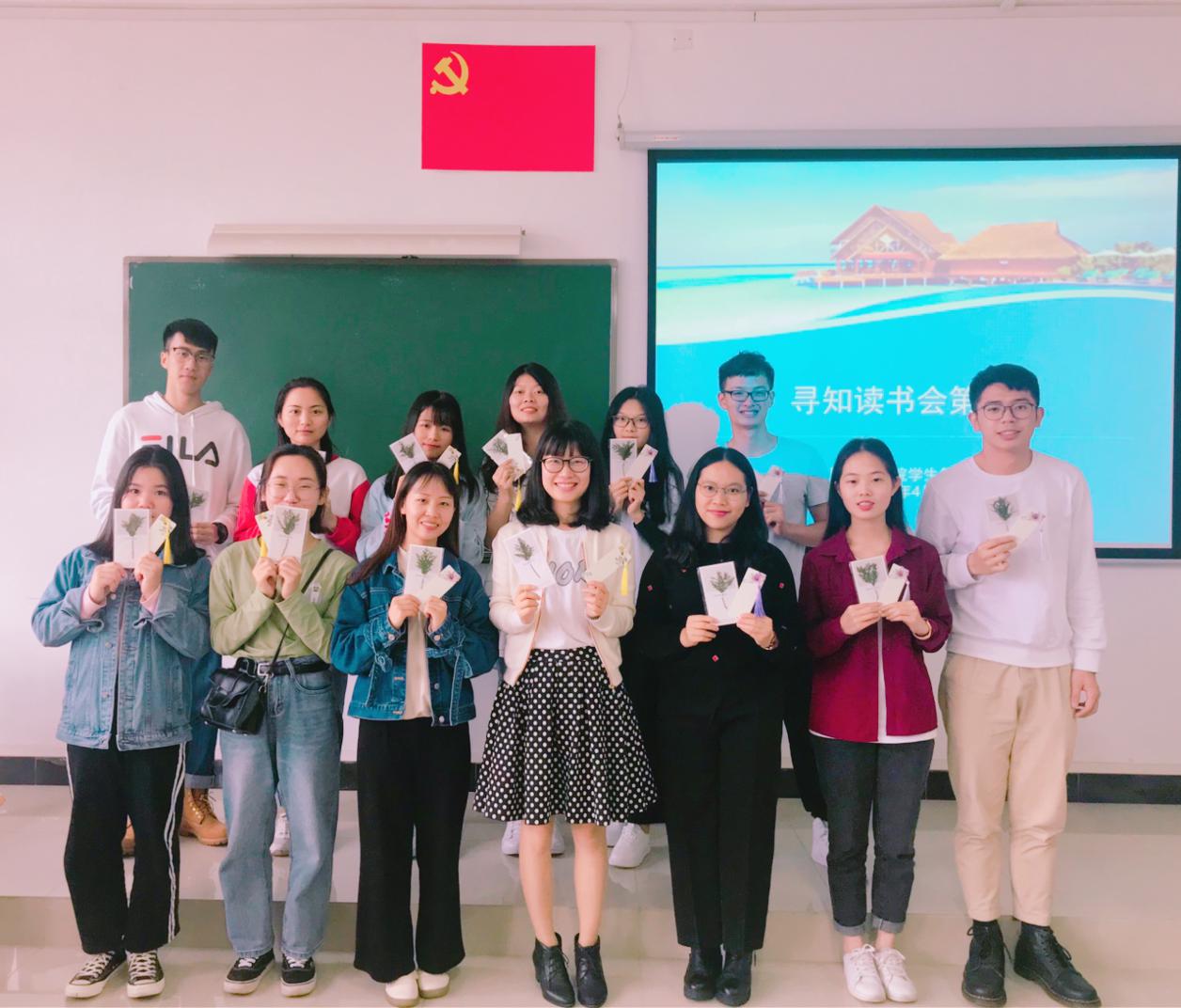 “学如弓弩,才如箭镞”。为培养学生阅读兴趣,养成良好阅读习惯,开阔眼界,增长学识,应用外语学院学生第一党支部成立“寻知读书会”。“寻知”取自校训“寻真求是,格物致知”,由第一个字和最后一个字组成,“寻知”寓意寻找真理,寻觅知音。