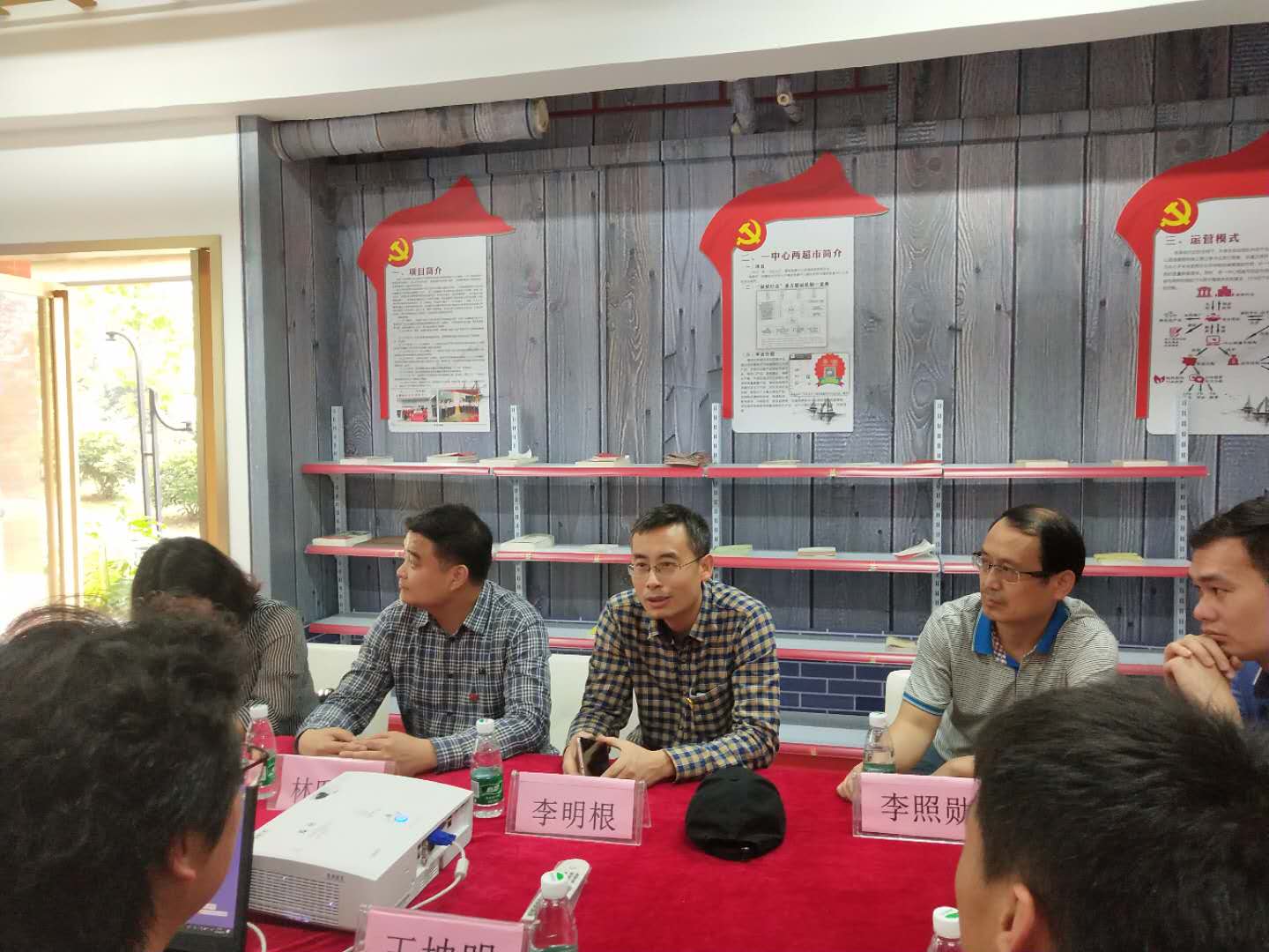 接下来,李明根一行参观了工贸∙万讯致富超市,并在经济贸易学院“红色之旅”讲习所进行了深入交流。会上,王坤明详细介绍了经济贸易学院党建特色和工贸扶贫“万讯模式”。经济贸易学院以红色之旅“讲习所”为依托,以党建引领+创新创业+精准扶贫的“三位一体”模式,发挥学习、体验、实践三大功能,实现基层党组织建设、大学生就业创业、脱贫攻坚工作“三促进”目标。