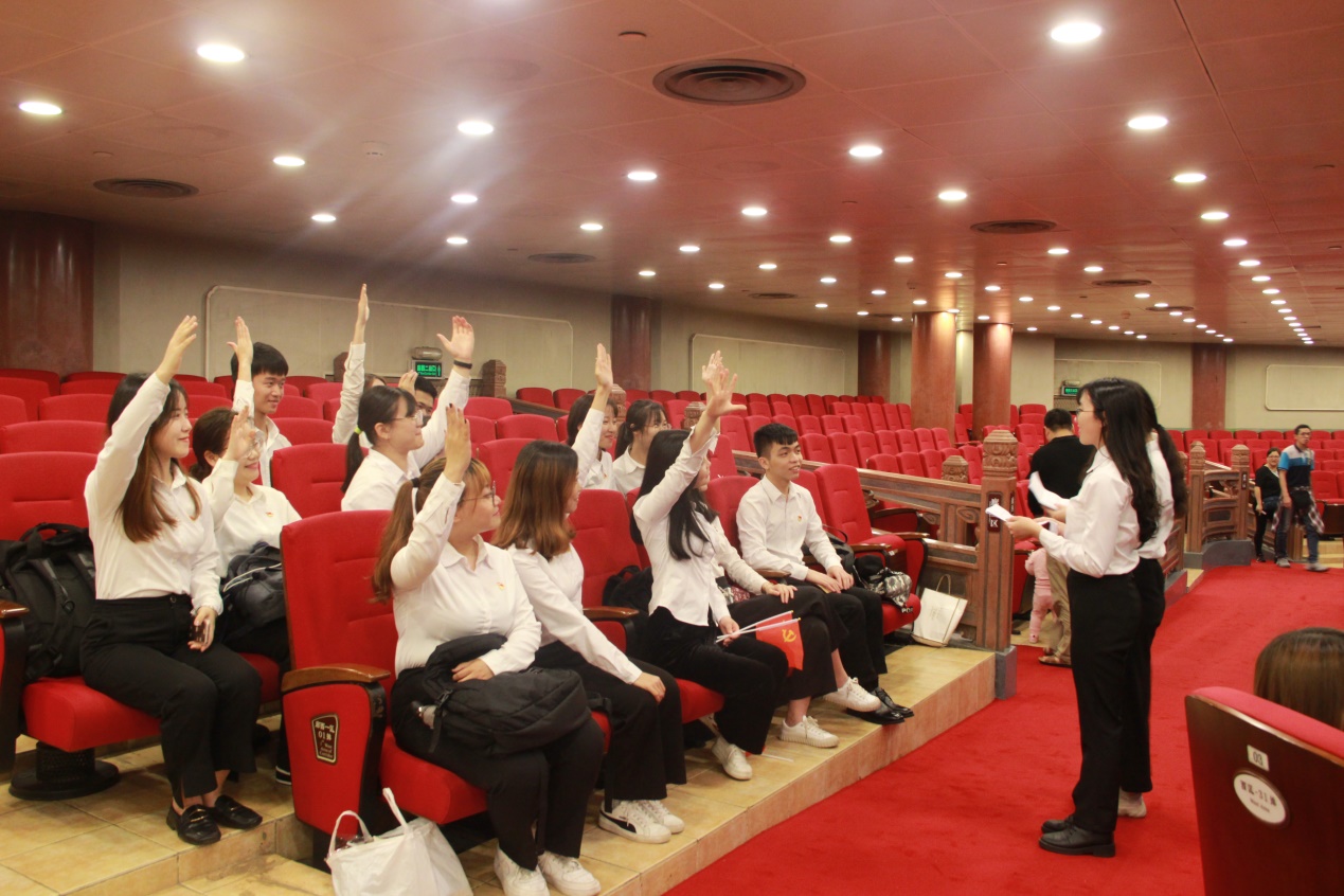 在中山纪念堂内,学生党员杨梓琳同志与戴春莲同志组织党员们开展知识竞赛加解说的活动,党员们凭借自己平时的理论知识积累,积极抢答,现场气氛激烈。