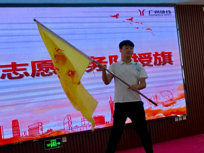 最激动人心的时刻就是表彰优秀共建单位、优秀志愿者和给共建单位授旗的环节了。我院截至目前派出了近三百名志愿者,616人次的志愿服务,累计志愿服务时长3696小时,被授予优秀共建单位。机电工程学院刘润升、陆彪才等12名学生被授予“优秀志愿者”荣誉称号。身着红马夹的志愿者们成为了保障地铁客运安全的重要力量,也是地铁站大客流中一道靓丽的风景线。