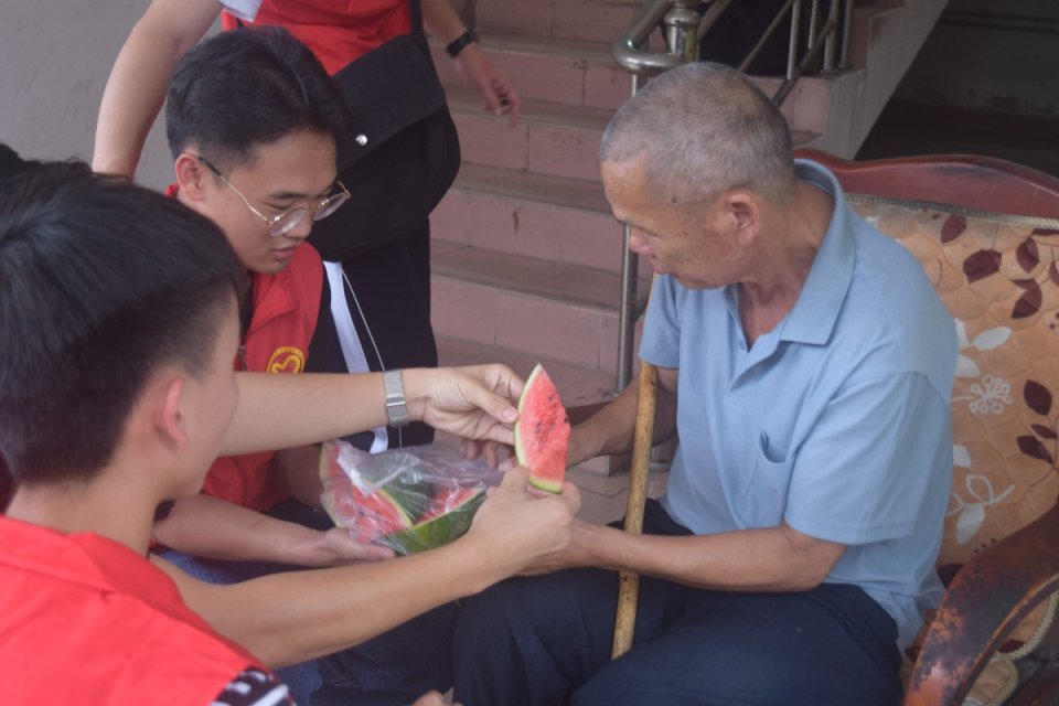 一踏进敬老院就听到三位老人坐在院子里热情地呼唤志愿者们,志愿者们也进行了明确的分工,粤语较好的志愿者亲切地与老人聊天,认真地聆听老人们述说日常琐事,整个院子回荡着老人们和志愿者们的笑声。其他志愿者替老人清扫敬老院,为敬老院带去一片洁净之地。志愿者们还送来水果,使老人们在炎炎夏日中获得一份清凉。