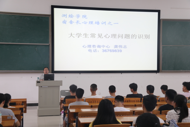 为呼吁大家关注自己、关注身边人的心理健康,和谐大学生宿舍人际关系,促进大学生的心理健康成长。2019年5月21日,测绘学院心理培训会于白云校区明德楼2-305召开,由龚伟志老师主讲,测绘学院宿舍长+班级心理委员代表参加本次培训会。