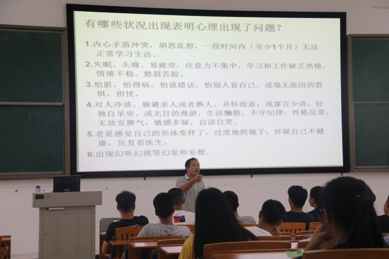 培训会开始,龚伟志老师提出宿舍长是一“家”之长,在面对室友产生“常见心理问题”和“心理障碍”时,宿舍长应选择适当时机及时建议室友接受心理健康教育中心专业老师的咨询与治疗,只有有效的咨询才能做好预防工作。龚老师利用案例让大家简洁明了地了解大学生目前的心理健康现状,通过讲述存在心理问题大学生的案例,来呼吁大家关注自己、关注身边人的心理健康。培训会的最后龚老师就宿舍长在各方面的作用给在座的宿舍长们提出了要求:要求大家发挥带头作用,主动为身边的人排忧解难,关注身边人的心理健康。