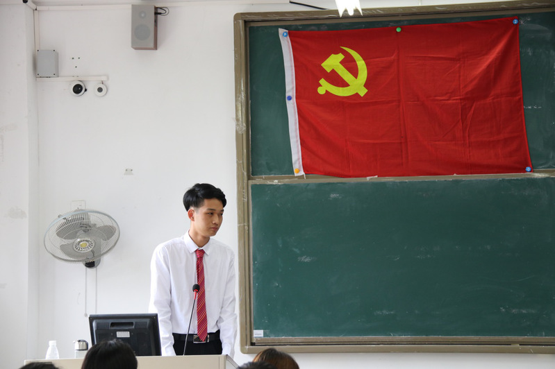 《国际歌》拉开了通表大会的序幕。在庄严的党旗下,新发展的党员进行了入党宣誓,10位发展对象宣读入党志愿书并进行答辩。每一位发展对象表明了加入中国共产党的决心。拥护党的纲领,遵守党的章程,履行党员的义务,执行党的决定,严守党的纪律,保守党的秘密,对党忠诚,积极工作,努力学习,为共产主义奋斗终身,随时准备为党和人民牺牲一切,永不叛党。