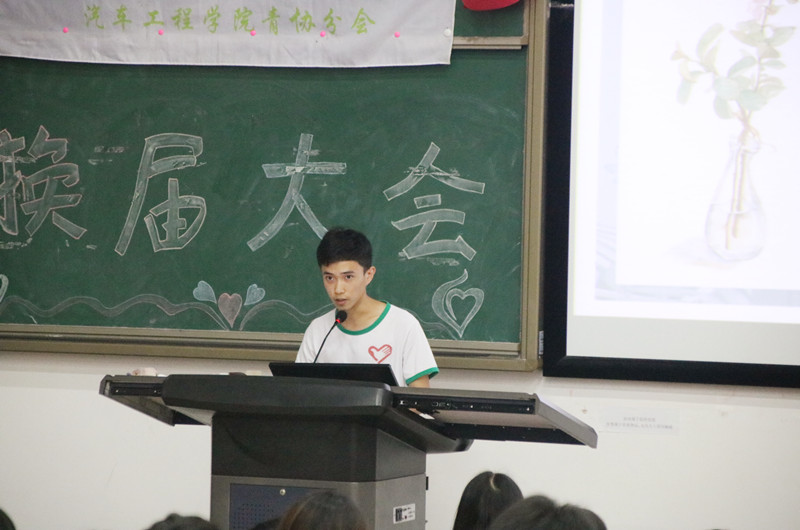 为了承前启后,继往开来,汽车工程学院青协换届大会于6月14日在明德楼2区103如期进行。出席本次大会的嘉宾有青协会长陈宏伟老师、16级副会长陈家辉、17级副会长吴木雄,17、18级青协全体干部干事,各学院青协代表、各班级青协小队长以及竹乐轩协会、军事爱好者协会、科技创新社、计算机协会代表等。