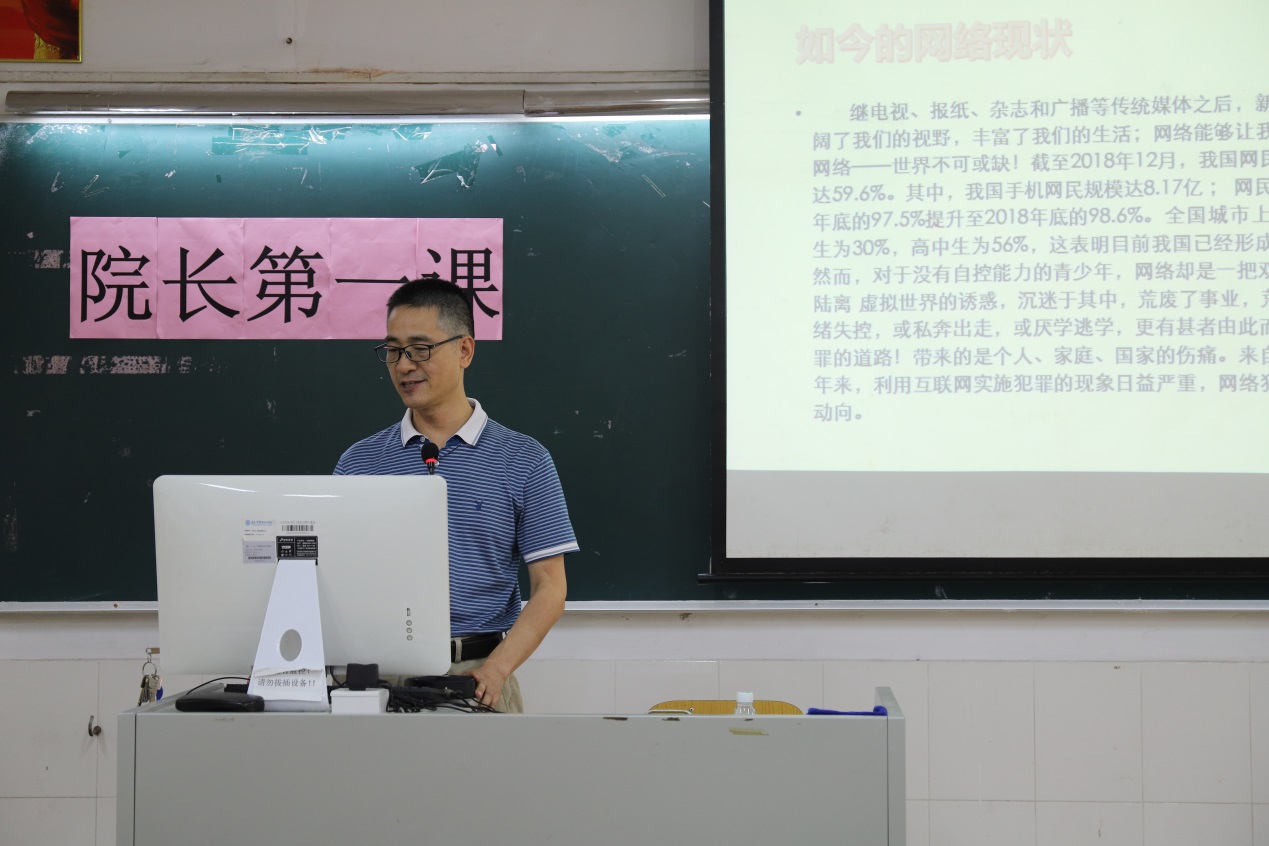 根据《广东省教育厅关于做好2019年春季学期高校党委书记、校长和院(系)党组织书记、院长(系主任)上第一堂思想政治理论课工作的通知》,计算机与信息工程学院院长余棉水教授于2019年6月11日在天河校区教学楼103为新一批入党积极分子开展院长第一课,余棉水进行了一堂以网络安全教育为主题的讲座。