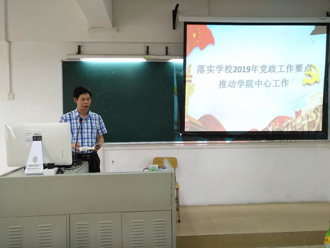 会上,彭卫东书记解读了2019年党政工作要点工作,强调要学懂弄通做实习近平新时代中国特色社会主义思想和视察广东重要讲话精神,落实立德树人的根本任务,加强师生思想政治工作,提升党总支的战斗力;要树牢“四个意识”,坚定“四个自信”,坚决做到“两个维护”,提出强力推进创新强校工程和一流院校建设,组织好优质校和“特高”校的申报工作,推进混合式教改,加大人才培养模式的创新改革力度,加强专业和专业群建设,打造一批高水平专业和特色专业。