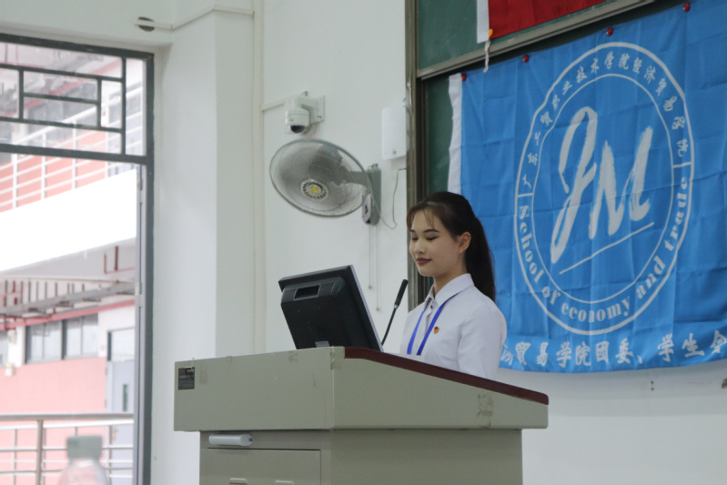 国歌奏唱完毕,由经济贸易学院学生会副主席纪泽杰向与会代表作大会筹备报告,随后校团委书记陈冠锋传达了上级团委的祝贺与期望,经济贸易学院党总支王坤明副书记代表经贸学院党总支致辞。