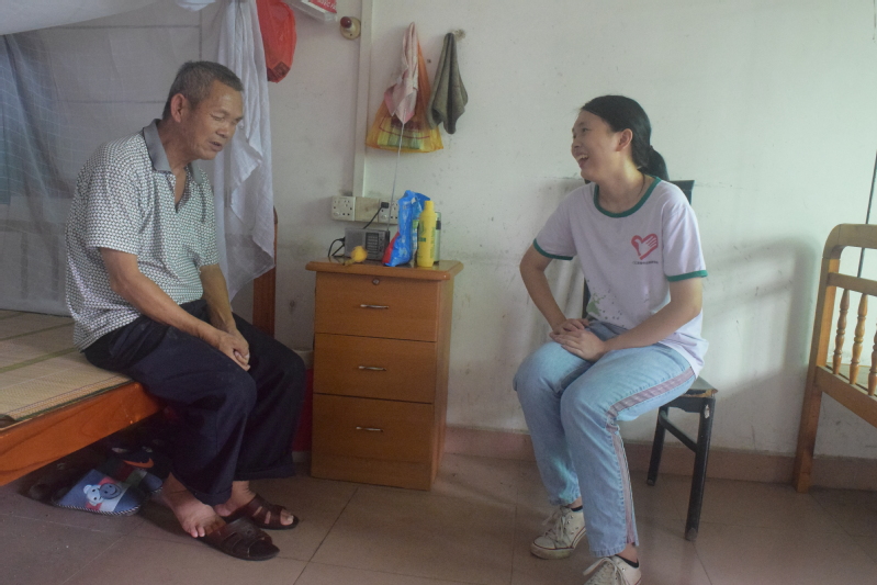 不会讲粤语的志愿者,拿起扫把为老人们清扫院子和房间,这不仅让环境更清洁、更干净,更重要的是给老人一个舒适的居住环境。