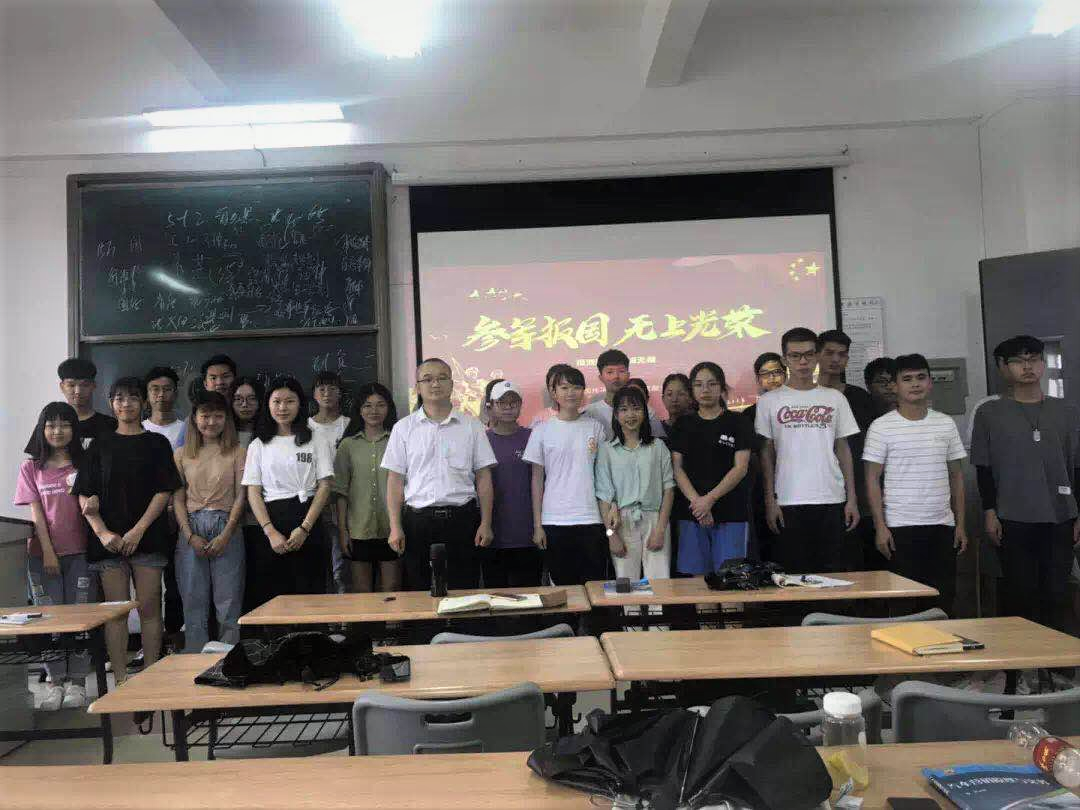 为鼓励广大学生积极参与应征入伍,推进国防和军队现代化建设,汽车工程学院于2019年6月在各班级组织开展以“大学生征兵入伍宣传”为主题的班会活动。其中18汽服2班同学由辅导员陈宏伟带领观看征兵宣传视频,宣传“参军报国,无上光荣”的主题思想。同时,陈宏伟结合《网上应征报名流程及大学生入伍优惠政策》等参考资料,对征兵流程及优惠政策进行宣讲,希望把“大学生征兵入伍”有关政策传达到每一位学生,发动学生积极应征入伍。