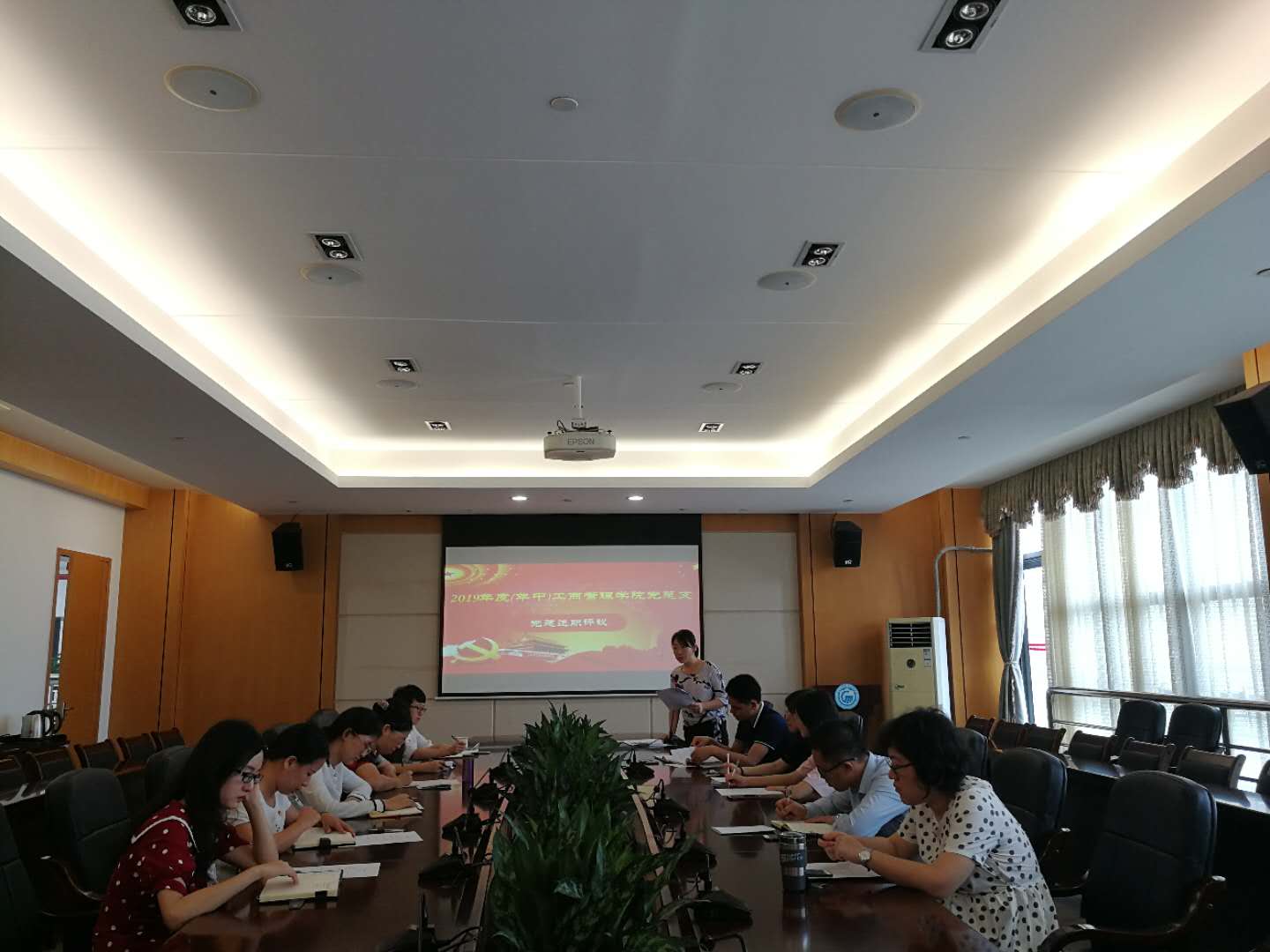 为深入学习贯彻习近平新时代中国特色社会主义思想和党的十九大精神,落实全省高校基层党建三年行动计划以及学校加强党建三年行动计划,6月27日上午,工商管理学院党总支在白云校区中心会议室组织召开了2019年度(年中)基层党建工作述职评议会。会议由党总支书记周清莲主持,党总支支委,各师生党支部书记及师生党员代表参加了会议。