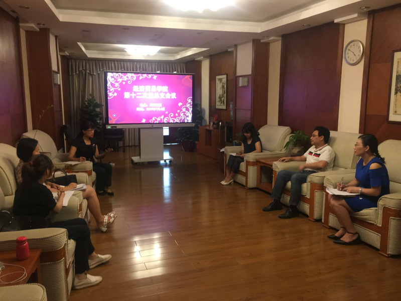 2019年7月4日下午,经济贸易学院党总支在天河校区第一接待室召开党总支会议,参加会议的人员有学院党总支副书记(主持工作)王坤明、党总支副书记、院长邱秀芳、党总支副书记龚云、总支委员和学院组织员。