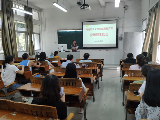 为更好地学习贯彻习近平新时代中国特色社会主义思想,准确地理解和把握党的十九大报告中提出的新思想、新论断和新举措,迎接中华人民共和国成立70周年,9月6日下午,马克思主义学院直属党支部结合本支部实际,利用本学期第一次组织生活会时间,开展了“坚持‘一国两制’,反对‘港独’,共创美好未来”的研讨会和“不忘初心,读懂、弄通、做实《习近平新时代中国特色社会主义思想学习纲要》”的专题党课学习活动。本次会议由直属党支部书记、马院常务副院长李瑞清主持,全体党员教师参加了学习。