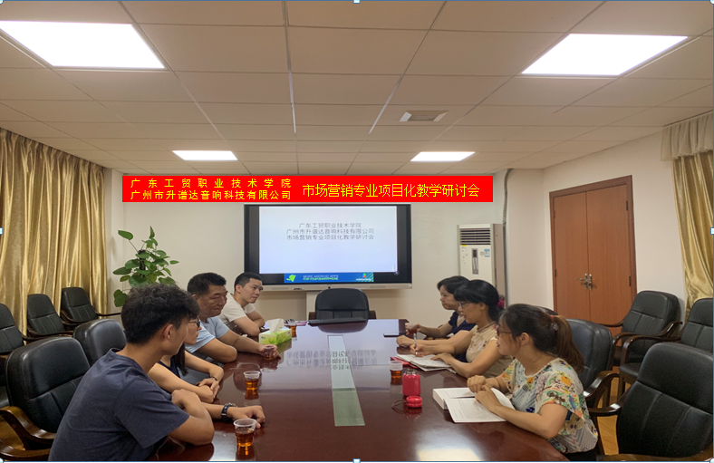 2019年9月10日,在第35个教师节当天,市场营销深度合作企业广州升谱达音响科技有限公司总经理韩继坤,带领企业骨干浙江办事处销售总监胡壮健,以及在今年7月份进入升谱达参与项目化教学的市场营销专业两名学生等一行4人,与365官网经贸学院党总支副书记、院长邱秀芳教授,市场营销专业带头人彭娟教授以及骨干教师廖文芳等,在天河校区西区第一会议室,共同研讨项目化教学的思政教育,韩经理代表公司祝贺老师们节日快乐!