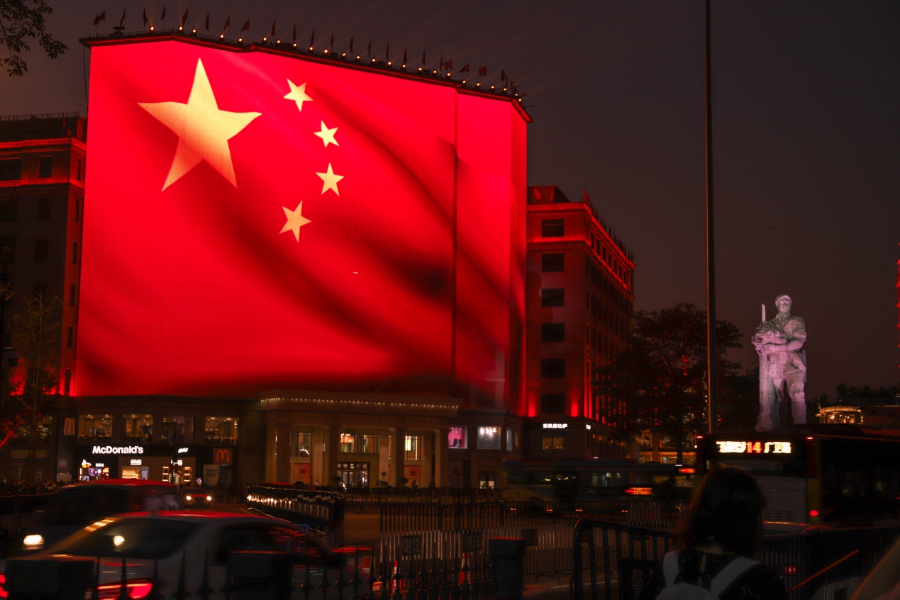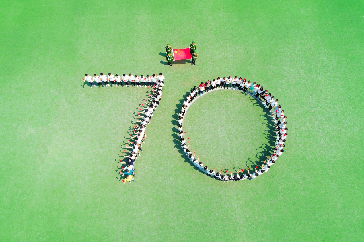 9月30日中午,天河校区,红旗招展,节日氛围浓郁。50余名计算机学院师生党员身着白衫,手持国旗,在东区足球场摆出“70”字样,表达对祖国的祝福。