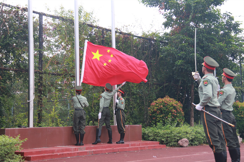升旗仪式正式开始,英姿飒爽护旗手迎着朝阳,踏着矫健的步伐,以饱满的热情,庄严地护送鲜艳的五星红旗进场。当雄壮有力的《义勇军进行曲》响彻了整个校园时,同学们集体行注目礼,全场弥漫着一种庄严肃穆的气息,鲜艳的五星红旗冉冉升起,激发了所有同学不断向上的斗志,点燃了同学们强烈的爱国热情。