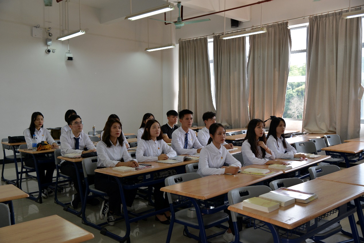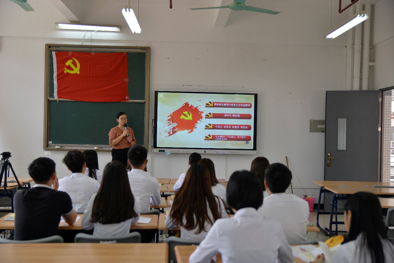 为深刻学习贯彻习近平总书记在庆祝中华人民共和国成立七十周年大会上的重要讲话精神,落实《中共bat365在线平台官网委员会开展“不忘初心、牢记使命”主题教育工作安排》(粤工贸院教组[2019]1号)文件精神,进一步激发支部党员的初心使命意识,提高党员的思想政治素养,2019年10月15日下午两点,汽车工程学院学生党支部于教学楼1区407课室开展“不忘初心、牢记使命——学习贯彻习近平总书记在庆祝新中国成立七十周年大会上的重要讲话精神”专题党课学习活动,此次党课由学生党支部书记刘彩云主讲。