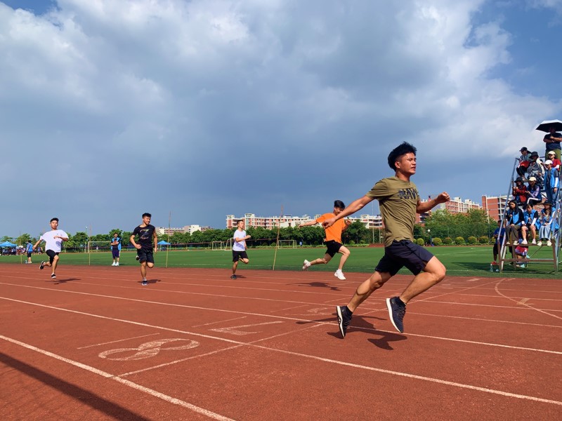 比赛正式开始。学院的各位运动健儿有序入场,工作人员再次调试设备,裁判员们各就其位,场外观众的热情欢呼助威,为运动会增添了一份色彩。当男子100米跑的第一声枪响起,整个赛场顿时沸腾起来,加油助威声此起彼伏,络绎不绝,更有各班学生宣传员准备各种加油形式为运动员们加油鼓劲。在观众的加油呐喊声以及注视下,各位健儿们拿出了自己百分百的实力,一个个如利箭般冲向终点,他们在跑道上尽情挥洒着汗水,为自己,为班级争光;男子女子800米、1500米和3000米更是考验选手体力和毅力的项目,运动员充分体现了努力拼搏,永不服输的运动精神;跳远健儿们尽力腾空,在空中形成了一条完美的抛物线;铅球选手们手中的铅球仿佛变成了一个个充满希望的许愿球,不断追逐着自己的梦想。