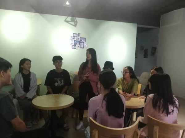 学生党员观影后进行讨论发言