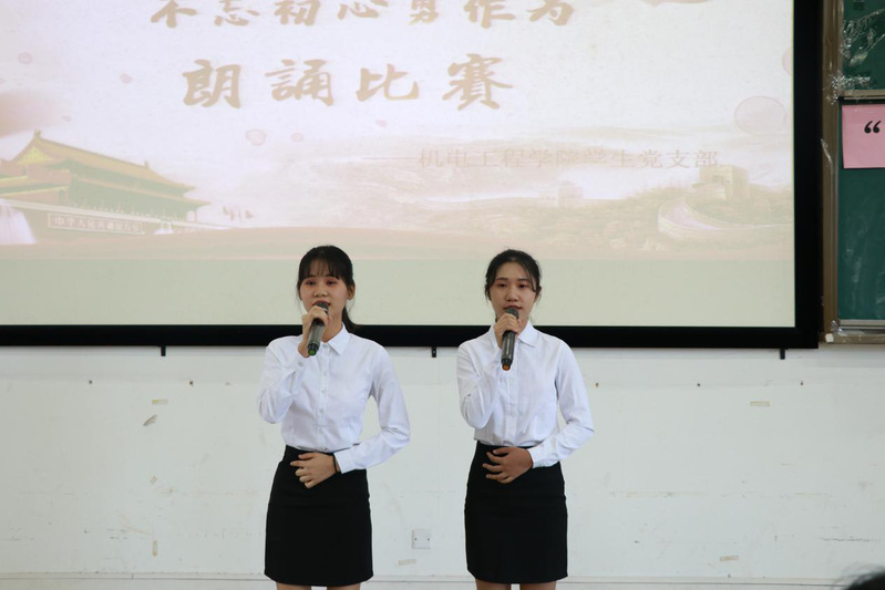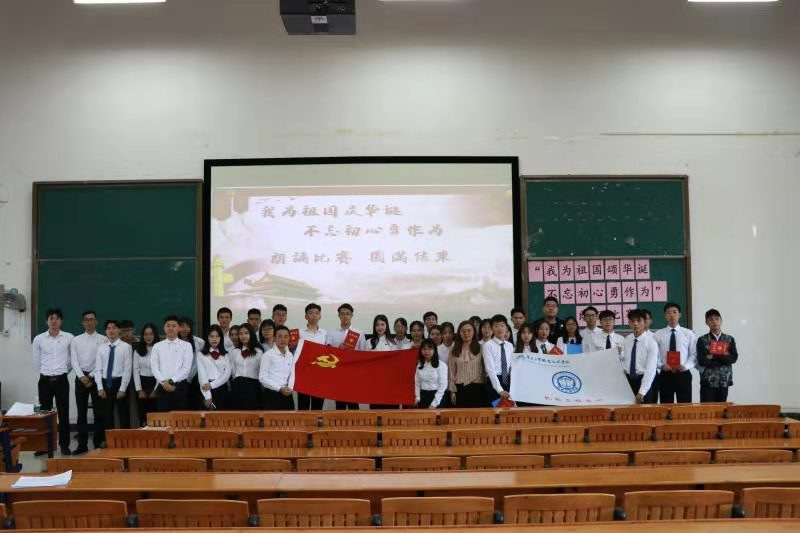 机电工程学院学生党支部为庆祝中华人民共和国祖国成立70周年,进一步激发广大学生的爱国热情,引导广大学生继承和弘扬爱国主义,坚定“四个自信”,坚持和发展中国特色社会主义。通过表演自身文艺,以此来表达对祖国70周年华诞的祝福,同时也激发大学生对祖国的浓浓爱意。2019年10月29日下午,于明德楼2区104开展“不忘初心、牢记使命”主题教育——“我为祖国庆华诞,不忘初心勇作为” 朗诵比赛。