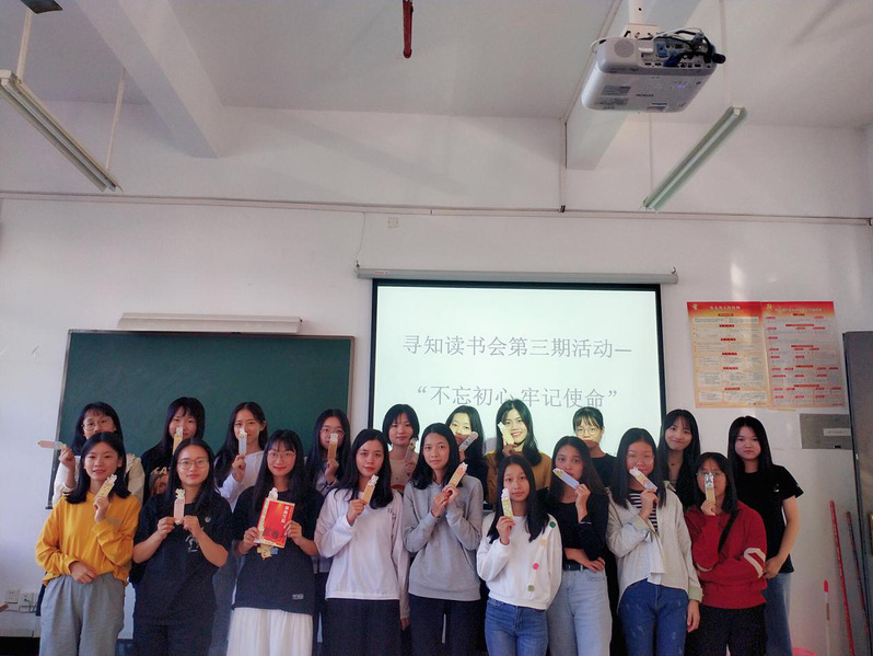 为深入贯彻落实“不忘初心、牢记使命”主题教育,献礼七十华诞,10月29日下午,应用外语学院学生第一党支部在1-618党员活动室举办了“寻知读书会”第3期活动——阅读红色经典,守初心担使命。支部在校学生党员,部分入党积极分子共20人参加了本期活动。