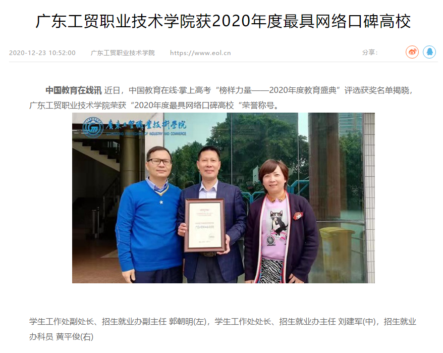 365官网2020年招生工作在校党委正确和坚强的领导下,在广大师生鼎力支持和共同努力下,圆满完成12种类型10238名学生的招生录取任务!以各类型在校生22295人的成绩来庆贺学校办学六十三周年生日!现圆满收官,2明年继续奋进!学校不仅给南方+评为“2020年广东高考招生宣传工作锐意创新奖”,现又被中国教育在线授“2020年度最具网络口碑高校”,