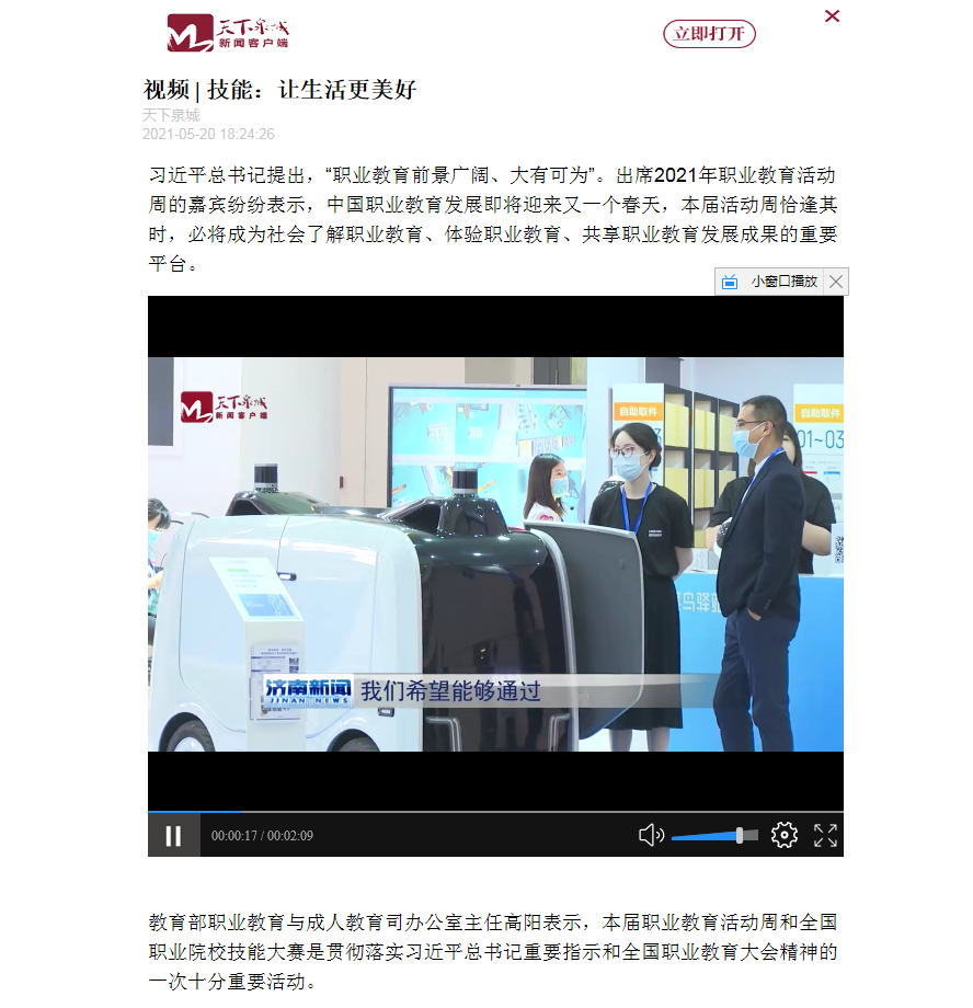 5月20日,2021年职业教育活动周暨全国职业院校技能大赛在山东济南盛大启幕。学校参加“双高计划”职业院校风采展,学校党委副书记、校长何汉武,党委委员、副校长刘贻新带队参加。