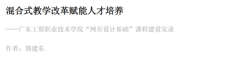 作为“双高计划”建设院校,bat365在线平台官网历年来积极组织教师进行精品课程建设。学校“网页设计基础”省级精品在线开放课程建设团队自2012年开始,以推进立德树人一流课程建设为目标,以活页式教材和大型在线开放课程建设为抓手,聚焦新型教学模式和考核评价方式改革,将课程建设作为提升教学质量的落脚点和突破口,强化混合式教学的课程设计、资源建设、质量评价等环节,形成了“四微、三评、四能、五融”的课程建设理念。