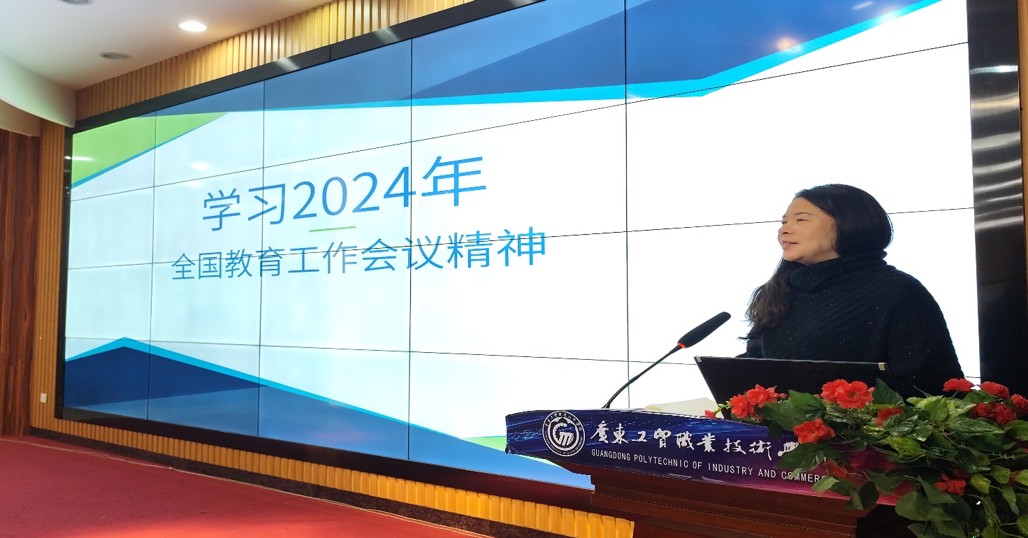 接着,张幼晖传达了“2024年全国教育工作会议精神”,2024全国教育工作坚持稳中求进、以进促稳、共同推动教育强国建设。张幼晖详细解读了全国教育工作会议提出的“2024教育要干7件事”,结合艺教学院在建设过程中面临的挑战和机遇,进一步强调了教学改革的重要性、教师积极转型应对挑战的重要性、全员动员聚力前行的重要性。张幼晖要求全体专任教师要不断更新教育观念,引入先进的教学技术和方法,适应形势变化的新要求,努力提升教育教学效果。学院要加大对科研项目和竞赛项目的支持力度,鼓励教师参与高水平的科研和竞赛活动,同时也要加强科研成果的转化应用,促进学院科研与教学的深度融合。