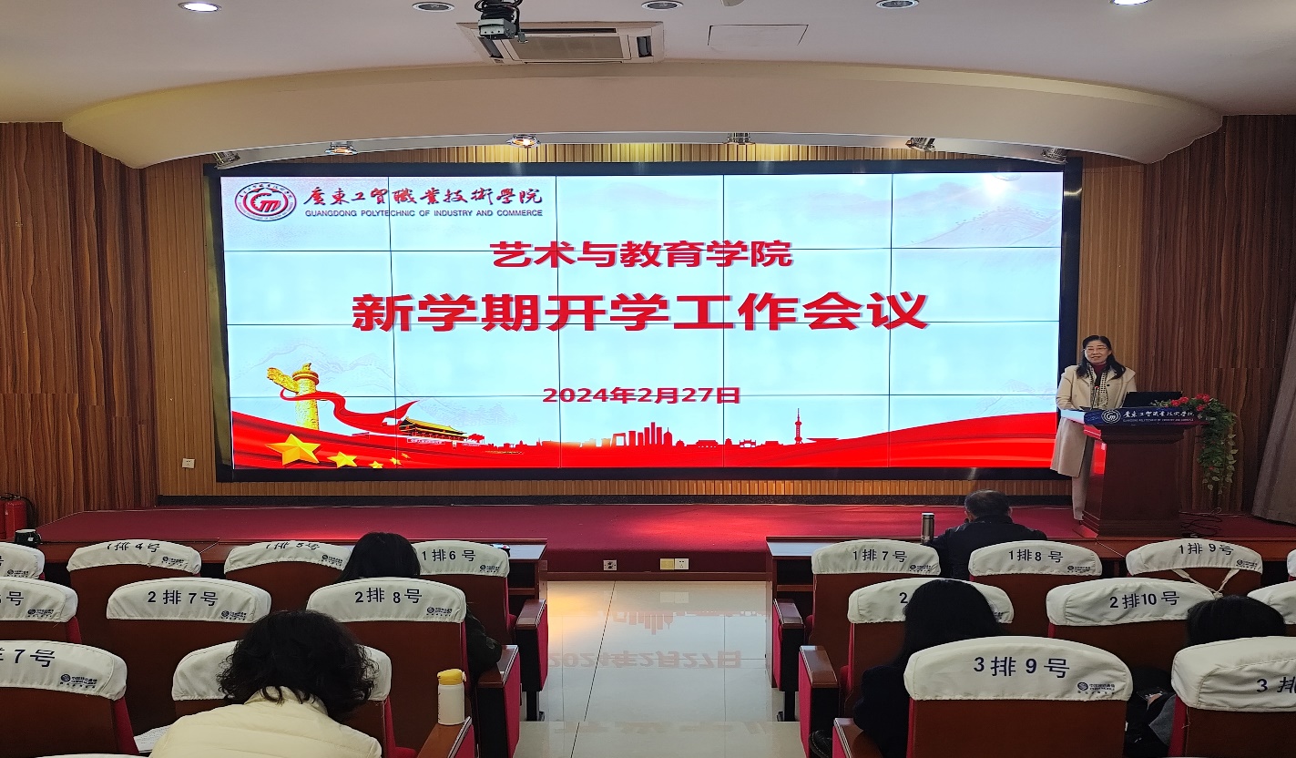 新学期伊始,艺术与教育学院召开了新学期开学工作会议,旨在为新学期的教学工作和学院运行提供指导方针,确保学院教育教学活动高质量开展。会议于2月27日下午2:30在荔湾校区报告厅举行,会议由学院办公室主任刘嘉主持,学院党总支临时负责人叶宜同、学院临时负责人张幼晖、副院长李小燕和全体教职工参加了大会。