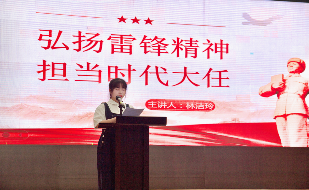 3月,是学校学雷锋志愿服务月。学院青年志愿者协会副会长林洁铃同学以“弘扬雷锋精神,担当时代大任”为主题作主题讲话。她表示,雷锋精神是奉献精神、敬业精神、创新精神以及创业精神,作为一名学生应该积极学习和践行雷锋精神,要有远大的理想和坚定的信念、有服务人民,助人为乐的奉献精神、有干一行爱一行,专一行精一行的敬业精神、有锐意进取,自强不息的创新精神、有敢闯敢创,永不言弃的创业精神。