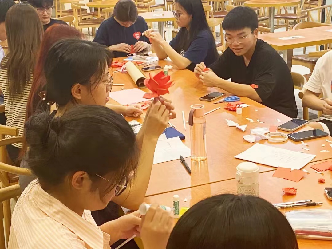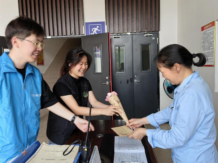 活动开始前,青协成员齐聚一堂,为宿管阿姨准备手工花和感谢信,希望能给她们带来小惊喜。活动期间,青协与军协成员手捧花朵穿梭在宿舍楼之间,将感谢信和手工花赠与宿管阿姨,让她们感受到学生的关心与尊重。最后,大家以一张大合照圆满的结束了本次活动。