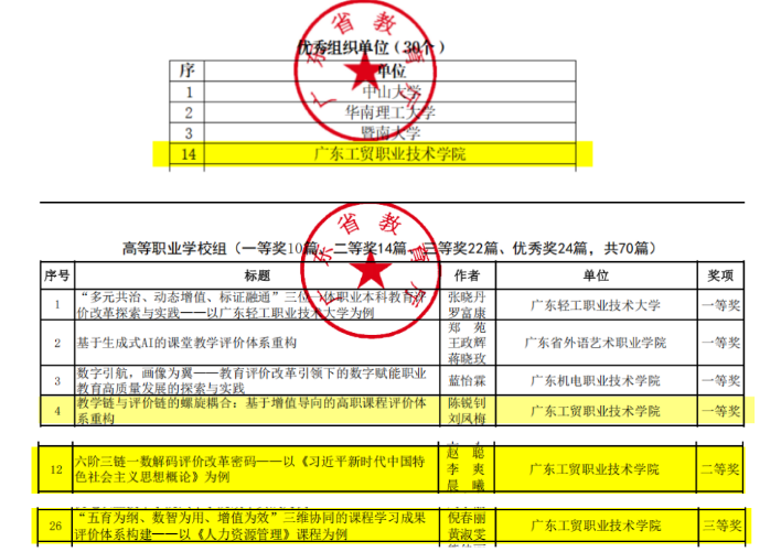 近日,广东省教育厅公布2025年教育评价改革主题征文活动获奖名单,学校成功获评全省“优秀组织单位”(全省共30个,高职院校仅5个),教师团队亦在此次征文比赛中斩获多项荣誉。