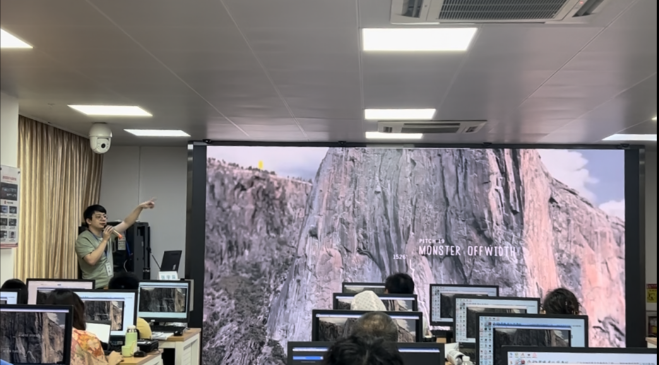 随后,学员们迅速投入到紧张的学习中。张宇辰老师深入浅出地讲解了无人机视频创作的剪辑技巧与思路,通过实例分析和实际操作演示,让学员们深刻理解如何运用各种软件和工具将拍摄的素材进行巧妙剪辑,将拍摄的素材巧妙地剪辑成富有创意和吸引力的视频作品,并如何添加精彩的航拍特效,以提升作品的视觉效果和艺术表现力。在航拍特效基础的教学环节,张宇辰老师详细介绍了各种特效的应用场景和制作方法,为学员们的创作提供了更多的可能性。