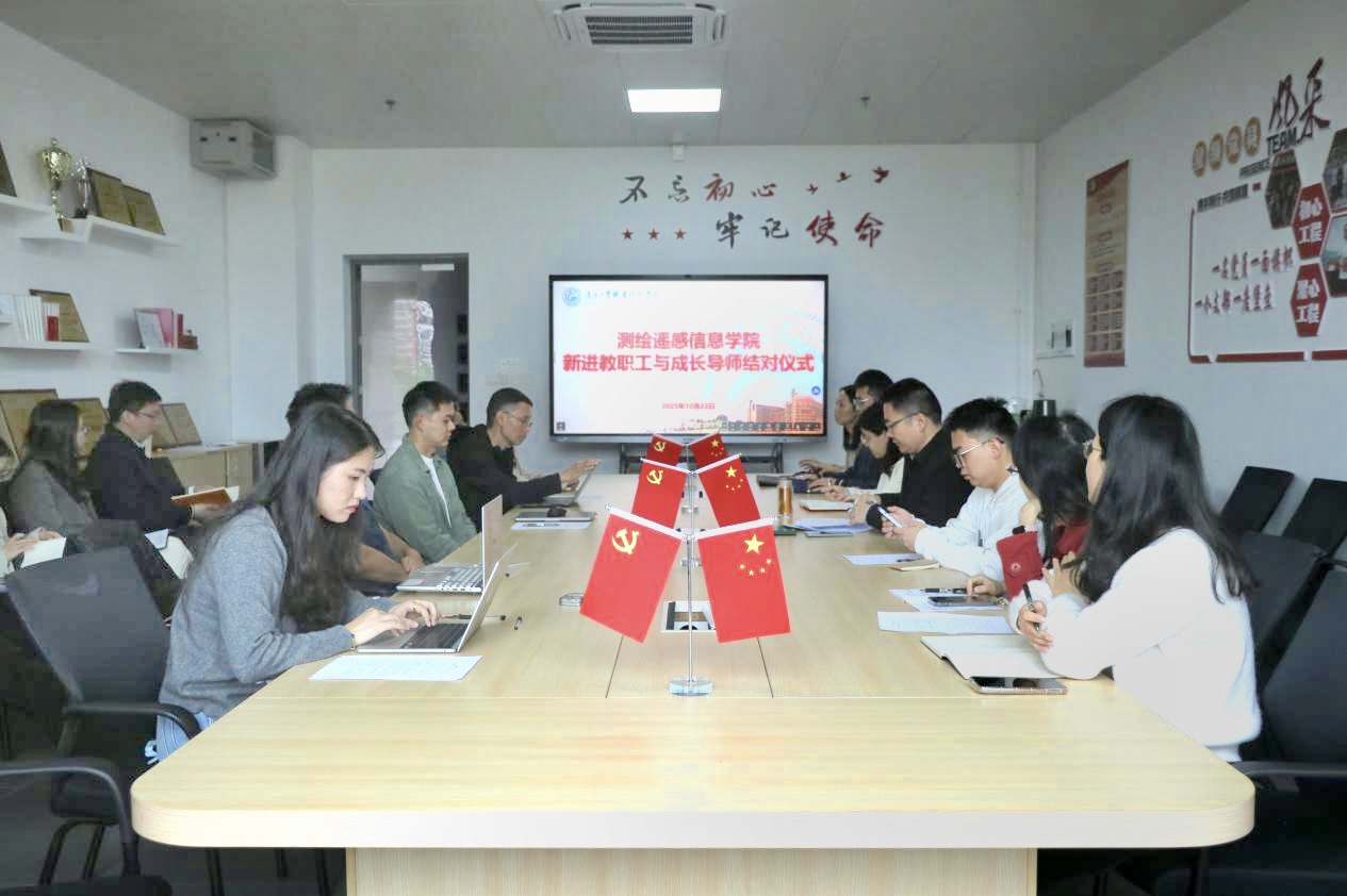 为加强师资队伍建设,助力新进教职工顺利启航、快速成长,2025年10月23日,测绘遥感信息学院在博学楼2区第一会议室举行新进教职工与成长导师结对仪式。仪式由学院副院长黄铁兰主持,党总支书记李元、院长高照忠等共同出席了本次活动。