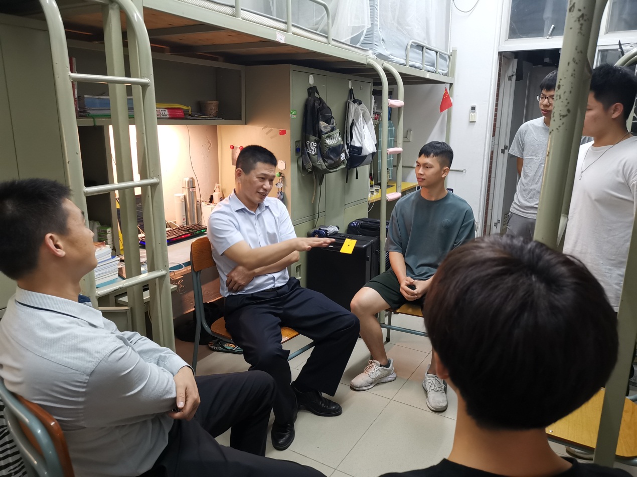 唐副校长紧紧围绕立德树人根本任务,聚焦学生成长成才,从学生的思想、学习、生活、安全和宿舍管理等各方面与学生进行深入的交流与探讨。他先从学生床上整齐的“豆腐块”谈起,让退役士兵朱泽南同学分享部队的生活点滴,探讨了军队的纪律、军人的作风,以及个人的理想信念。他指引在场的同学应坚定信念、牢固树立“四个意识”,坚定“四个自信”,坚决做到“两个维护”;希望朱同学能继续发扬部队的优良作风,做好自己,影响他人。勉励同学们珍惜校园时光,认真学习专业知识、磨炼专业技能,全面提升专业能力,博览群书,扩大知识面,努力使自己成为高技能高技术高素质的复合型人才。