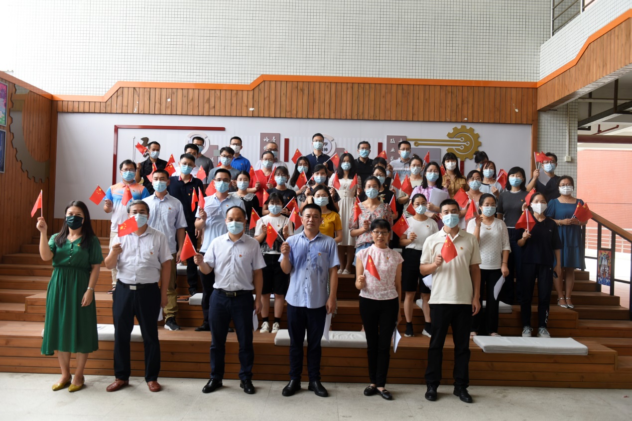 一首传唱了近一个世纪的老歌《歌唱祖国》打开历久弥新的记忆;手举五星红旗,面对鲜红的党旗,党员同志们唱出了对祖国深深的热爱,唱出了久久未能平复的激情。
