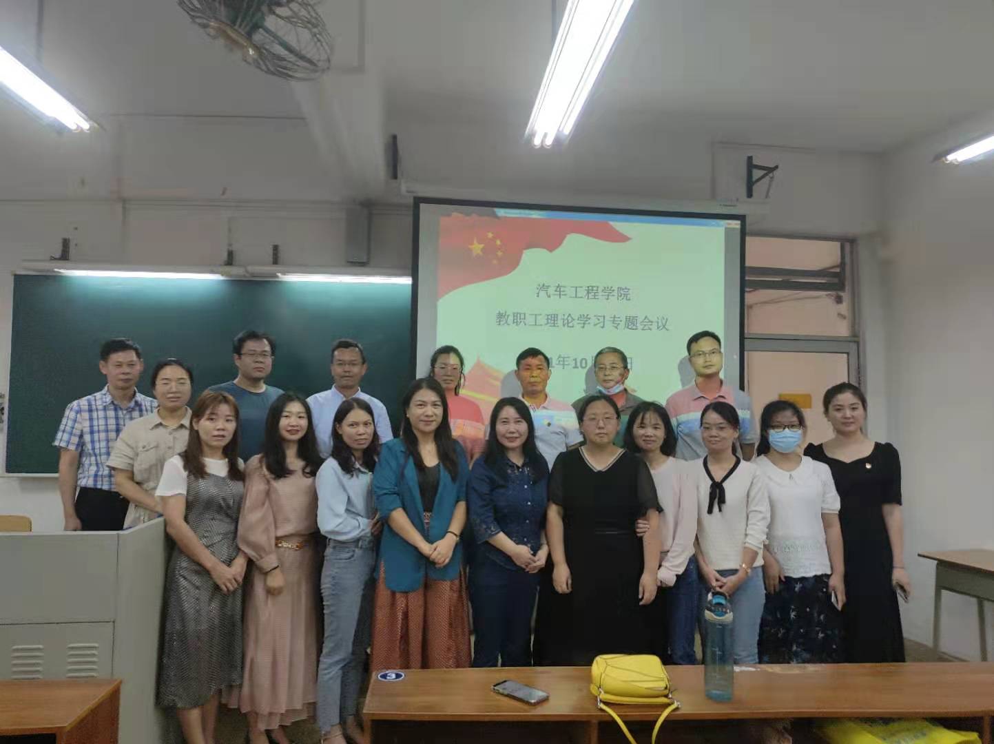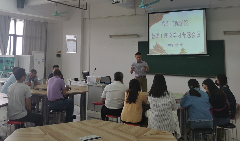 根据学校《关于组织开展教职工理论学习的通知》文件精神,10月12日下午,汽车工程学院党总支组织全体教职工开展专题政治学习。为方便学院教职员工,遵从“以师为本”的原则,体现学院文人关怀,本次专题政治学习活动根据学院实际情况开设了天河校区西区综合楼405和白云校区行知楼303两个会场。
