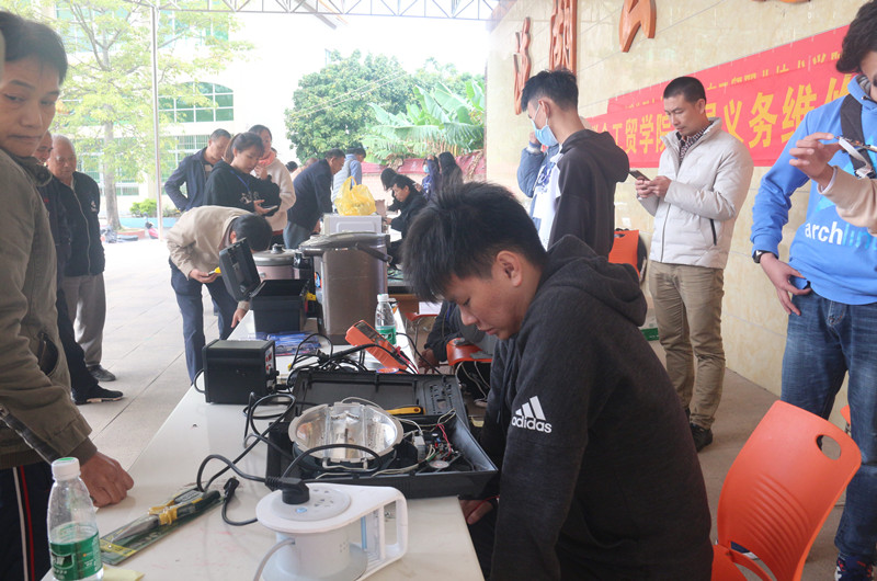 为进一步深化党史学习教育,推动“我为群众办实事”实践活动落地落实,充分发挥好青年大学生的志愿服务精神,激励基层党组织和广大党员不忘初心、牢记使命,用心用情用力解决群众烦心事。在汽车工程学院党总支的带领下,汽车工程学院青协分会联合科技创新社、电信实验室于11月23日在湴湖村开展家电义务维修活动。汽车工程学院党总支书记彭卫东、党总支副书记欧敏以及多名党员老师莅临现场指导。 老师与学生在维修现场 此次活动旨在解决村民的旧家电维修问题以及解答村民对于家电使用的疑问。活动当天,志愿者们提前来到维修场地,有条不紊地按照分配的任务进行场地布置,为接下来的维修工作做好准备。 伴着冬日暖阳,维修正式开始,前来维修家电的村民络绎不绝,在维修队员细致的检修后,村民们带来的大部分小家电都已复旧如初。同时,对于一些不方便搬动的家电,志愿者们主动提供上门服务,以实际行动帮助村民解决困难。志愿者们专业的维修技能和积极主动的志愿服务态度也得到了村民们的一致好评。 维修现场 随着时间的流逝,家电义务维修的活动也圆满结束,本次维修范围主要包括电风扇、电饭煲、热水壶等家电的维修以及日常用电安全的知识普及等。根据不完全统计,此次维修的家电共计48件。 活动大合照