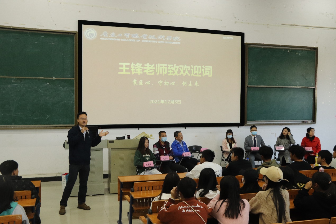 首先由王锋致欢迎辞,对受邀到场的优秀校友表示热烈欢迎,希望各位同学能多学习师兄师姐的经验,早日成长成材。