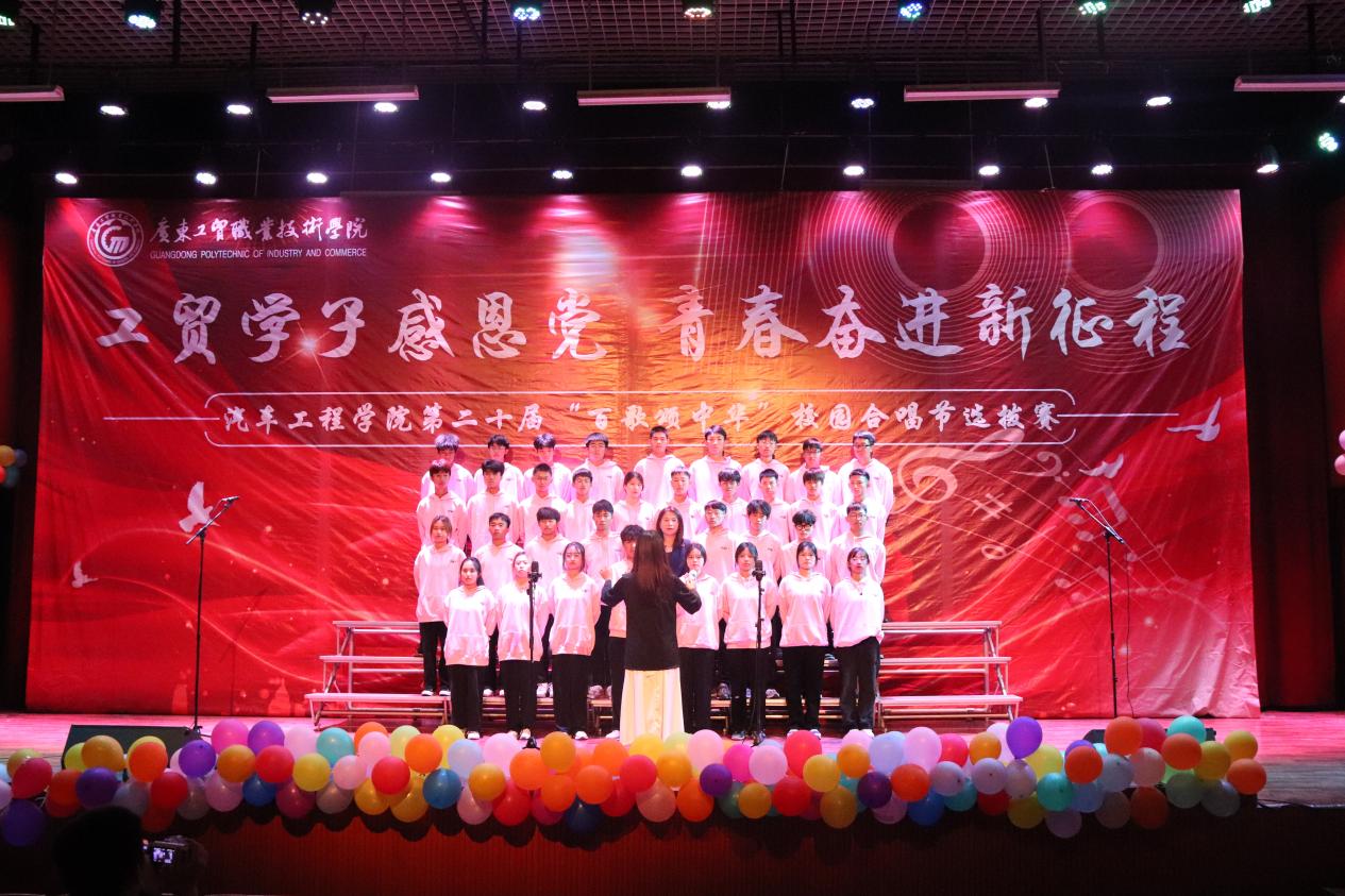 为庆祝中国共产党100周年华诞,重温红色经典,传承中华民族优秀文化,弘扬爱国主义精神,为学生提供展示自我的舞台,营造浓郁的校园文化氛围。汽车工程学院于2021年12月13日下午4点在白云校区演艺厅举办“工贸学子感党恩,青春奋进新征程”百歌颂中华校园合唱节选拔赛。汽车工程学院党总支书记彭卫东、院长王艳芬、党总支副书记欧敏、辅导员陈宏伟、陈莹颖、桂晶晶、石小玲、安小宁、白雪、詹琪琪出席了活动。此次“百歌颂中华”活动共有2020级、2021级35个班级参加。