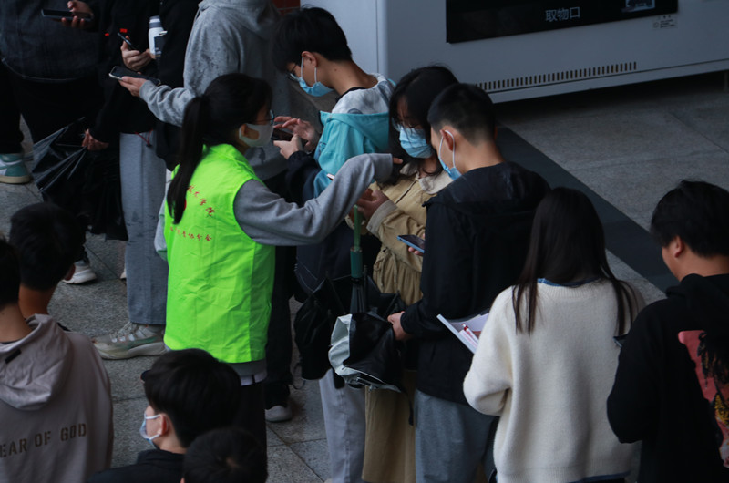 为确保此次核酸检测活动能够快速有效的完成,志愿者们提前到达现场进行签到,做好核酸检测前的准备工作。上午八点半,核酸检测工作准时开始。在检查现场,志愿者们指引接受核酸检测的师生们有序排队,分批进入,保持一米间距。医护人员全程穿戴全套医疗防护装备,一丝不苟地做好每一项工作,洗手、拆核酸检测棉签、咽喉拭子取样。进行核酸检测人员均佩戴口罩,按照指引依次登记个人信息,进行核酸采样后有序离开,整个核酸检测过程科学、规范、高效。