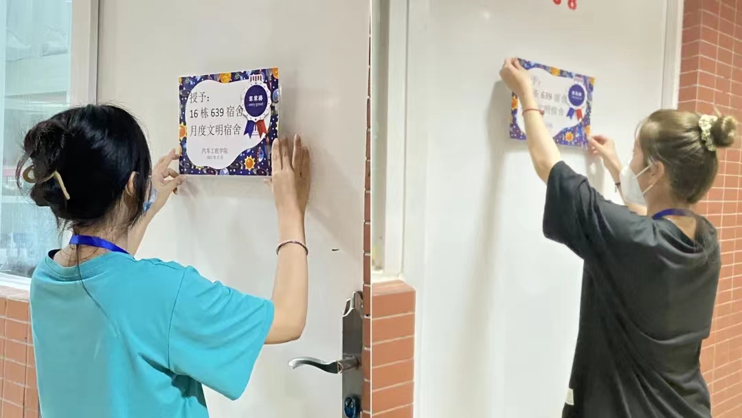 为进一步推进汽车学院宿舍文明建设,规范学生良好的生活习惯,培养学生优良风貌,打造安全、整洁、优雅的宿舍环境,推动养成讲文明、讲卫生、比风尚的良好氛围。本学期开始,汽车工程学院在全院范围内开展全院宿舍大检查工作,并公布月度文明宿舍和不合格宿舍名单,文明宿舍颁发奖状,不合格宿舍告知整改。在全院学生中形成“你追我赶”文明宿舍风尚,力求最终实现学院文明宿舍奖状全覆盖。 贴文明宿舍奖状 文明宿舍成员和奖状合影 5月12日,汽车工程学院文明宿舍上牌啦!以学院副书记带领的全体辅导员队伍,以及院团委学生会实践部成员组成的宿舍检查小组,肩负文明宿舍评选的重任,负责学生宿舍纪律、内务卫生监督和检查并打分。根据《学生手册》内宿舍内务管理规定,结合疫情常态化管理的各项要求,检查小组逐层、逐间进入宿舍检查,包括地面、墙面、床铺、门窗、阳台等内务卫生,以及严禁使用大功率电器、严禁宿舍内饲养动物等宿舍秩序及安全,对学院近400间宿舍做到一个不漏的“体检”。学生会干部检查过程中礼貌敲门、表明身份、填表打分、拍照记录,一气呵成,井然有序。检查宿舍内务的辅导员,除了指导检查小组开展工作外,还嘱咐文明宿舍继续保持,要求内务卫生不合格、有安全隐患等不达标宿舍完成整改,要求真正做到爱护宿舍环境、共创温馨小家。 实践部干事检查宿舍 辅导员检查宿舍 宿舍检查小组根据抽查及整改情况进行综合评比,评出了四月份共23间月度文明宿舍及9间不合格宿舍。截至目前为止,学院共有35间宿舍获得月度文明宿舍,其中有10间宿舍获得两次月度文明宿舍。获得月度文明宿舍的将授予奖状并张贴于宿舍门口,让宿舍成员感受大家的羡慕与崇拜,成为大家瞩目的学习榜样!如果连续一整个学期都获得月度文明宿舍,将授予学期文明宿舍奖状。对于月度不合格宿舍,督促及时整改、以求达标。 文明宿舍 不合格宿舍 整洁宿舍内景 汽车学院开展的文明宿舍评比,不仅提高了全院学生宿舍内务规范整理的意识,而且增强了学生自律、合作和创造意识,逐步实现学生自我教育、自我管理、自我约束,有效促进学生营造健康成长的宿舍环境,打造积极向上的宿舍文化,进而优化学院育人环境,促进校园文化建设! 希望已上牌的文明宿舍能够继续保持宿舍内务干净整洁,持续上牌!同时也希望其他未获奖宿舍尤其是不合格宿舍加紧整改宿舍内务,力争上牌!争取早日实现文明宿舍全院覆盖的目标! 汽车工程学院 图、文/吴浪冰 编辑/周名力 审核:欧敏 |