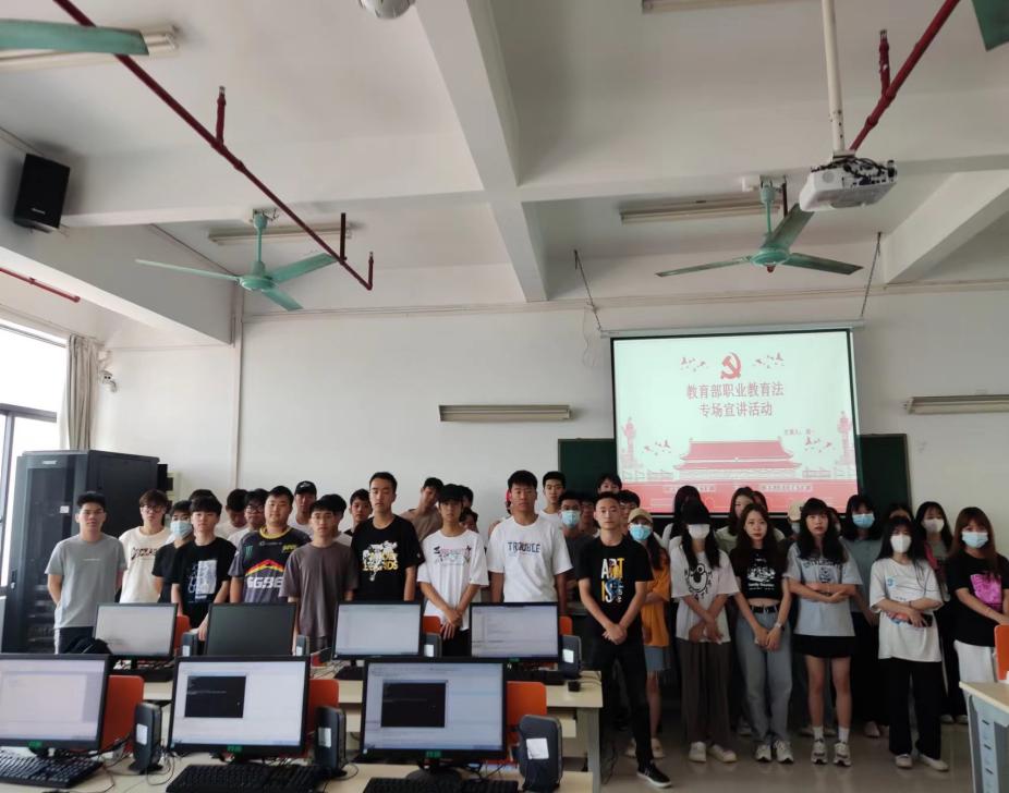 除2019级学生实习利用网络自学外,全院2020级和2021级总共35个班充分利用多媒体教室等资源,由班主任指导,在班干的带领下集中通读了《中华人民共和国职业教育法》原文,一起学习了教育部系统权威解读职业教育法修订过程、主要内容及落实政策的视频,使同学们对职业教育政策和理论的丰富内涵和精神实质有了更深层次的理解。看完视频,各班同学重点围绕职业教育法新修订的相关条款畅所欲言、热烈讨论。大家一致表示,“明确职业教育是与普通教育具有同等重要地位的教育类型,着力提升职业教育认可度”提升了大家对于职业教育的信心,更看好自己未来的职业前景了。而提到的“深化产教融合、校企合作,完善职业教育保障制度和措施”,则从制度上保障了职业教育与社会需求的契合,为学校培养高素质技术技能人才打下基础,更好推动职业教育现代化。